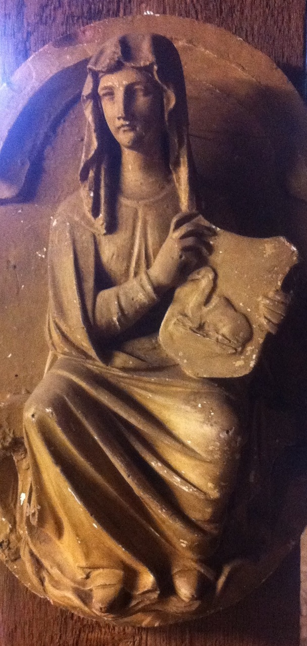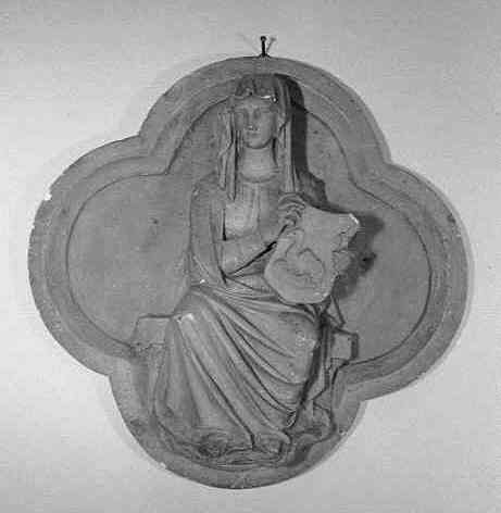 Reliëf met vrouwfiguur en wapen