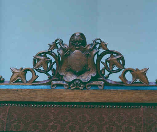 De zitbank weerspiegelt de voorliefde van architect Pierre Cuypers voor de middeleeuwen. De bank draagt een versiering met bladmotieven in reliëf, uitgespaard in een groen fond. Het midden van de rug is bekroond met een wapen met de tekst: "Si tollis druaen, tollis dor".