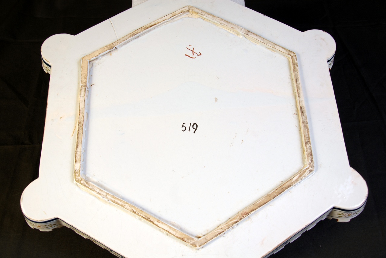 onderzijde: geschilderd: een kruis met drie lijntjes erom heen