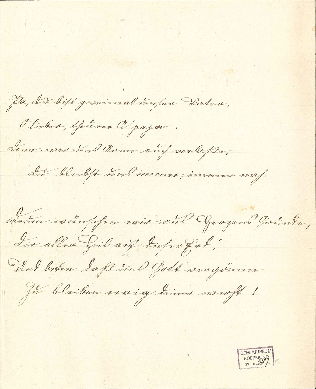 An meinem Lieben theüren ..papa, auf seinem 70sten Gebürtstag den 16stsen Mai 1897