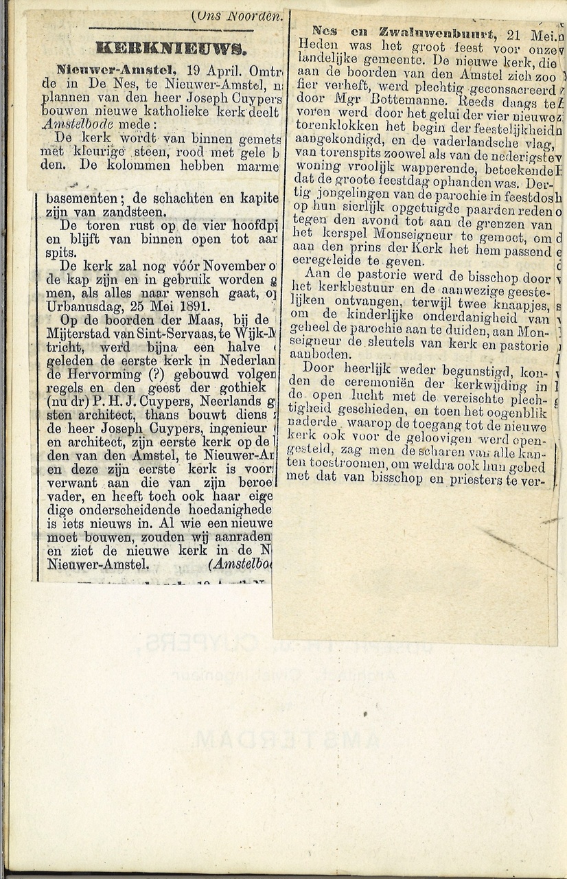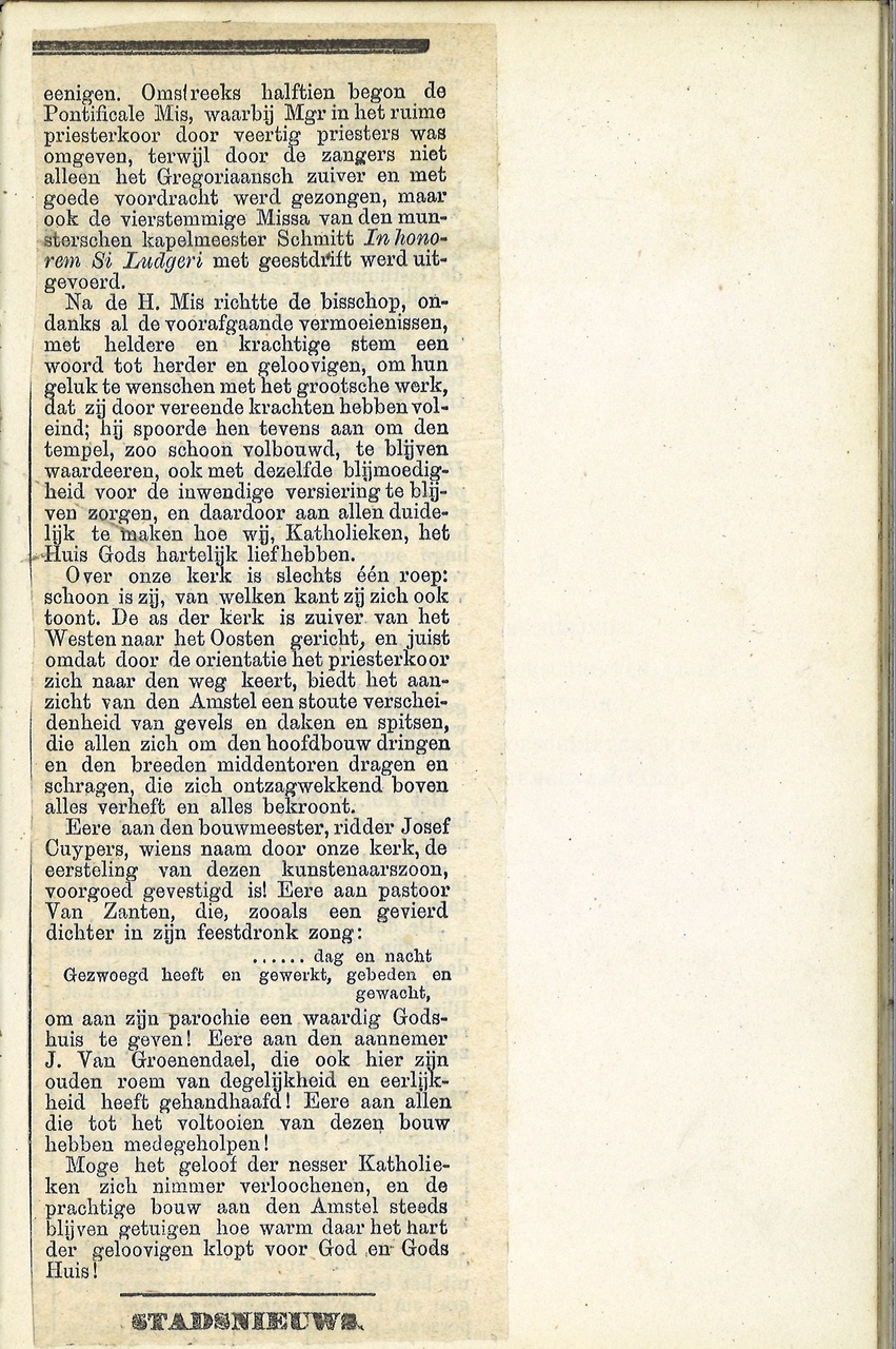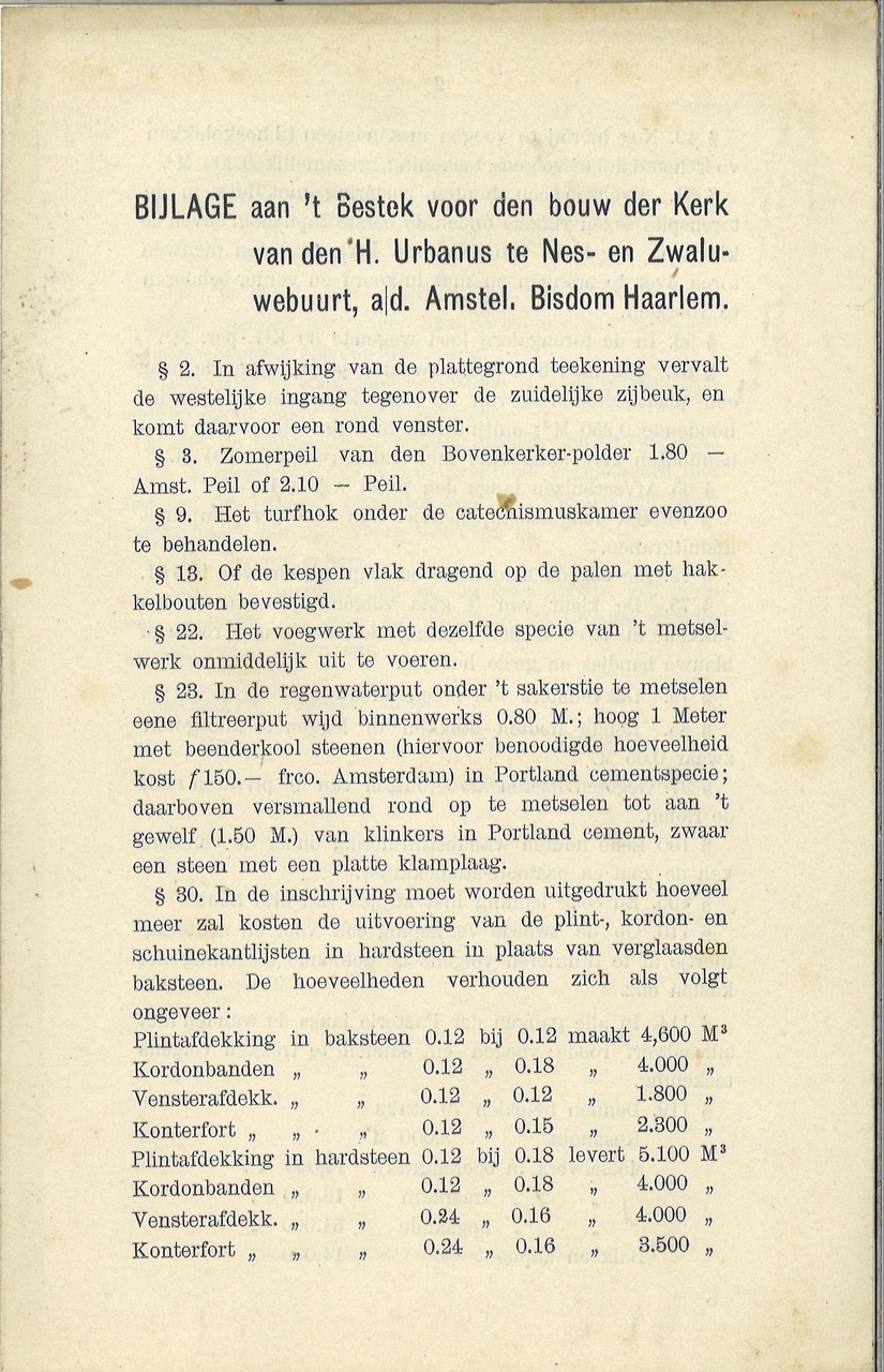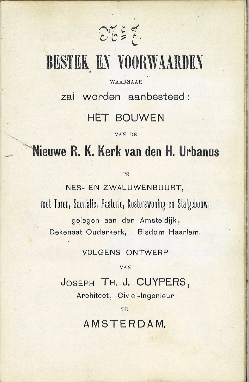 Bestek en voorwaarden waarnaar zal worden aanbesteed: het bouwen van de Nieuwe R.K. Kerk van den H. Urbanus te Nes-en Zwaluwenbuurt, met Toren, Sacristie, Pastorie, Kosterwoning en Stalgebouw, gelegen aan den Amsteldijk, Dekenaat Oudekerk, Bisdom Haarlem, volgens ontwerp van Joseph Th. J. Cuypers, architect.