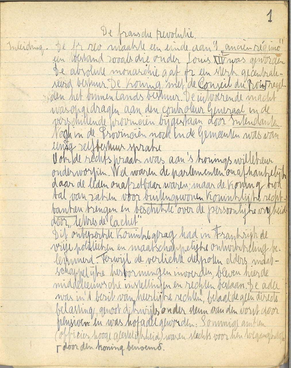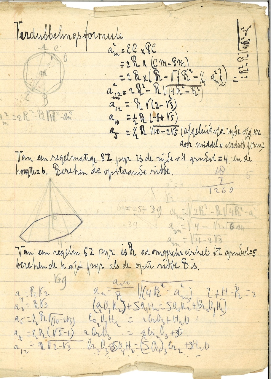 Schrift met div. aantekeningen betreffende geschiedenis. Losse bladen erin, voorin een berekening: Verdubbelingsformule. Bruine kaft met etiket. Op de voorkant kaft m.o: Gebr. van Brederode 21, Groote Markt, Haarlem.