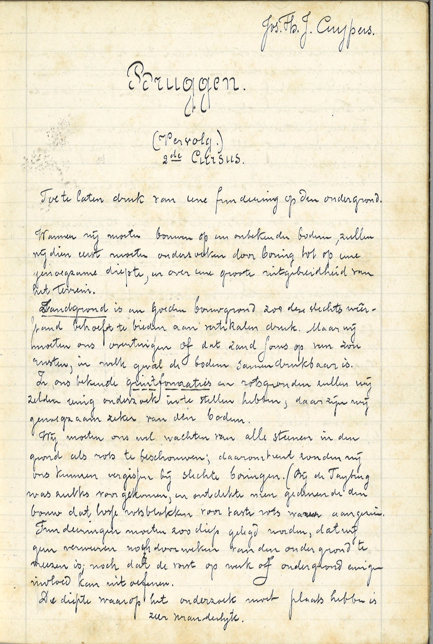 Bruin schrift met aantekeningen en tekeningen betreffende bruggenbouw.