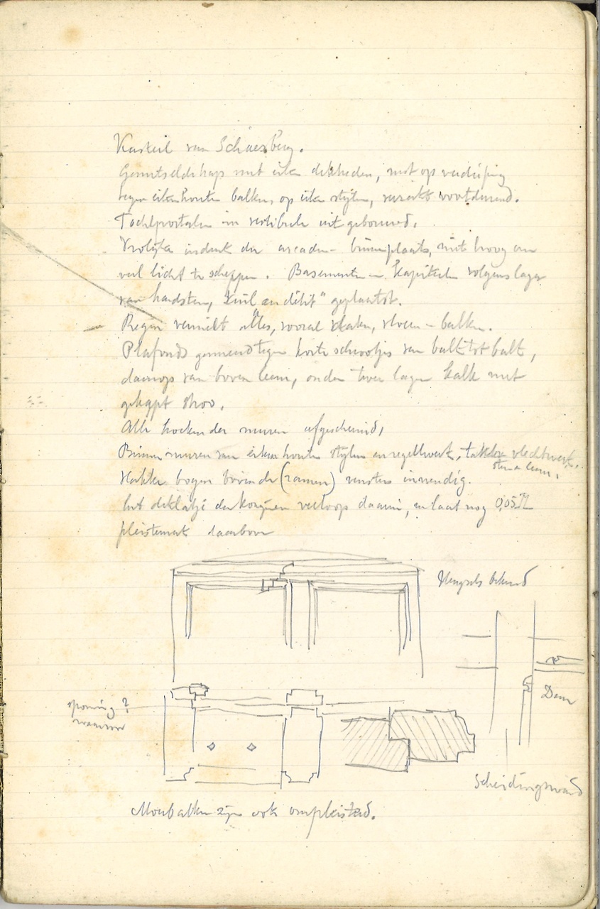 Diverse aantekeningen en berekeningen van bouwprojecten, o.a: Kasteel van Schaesberg, Kloostergang Utrecht, Oisterwijk, Voordracht voor Ambachtslieden, Terreinopname De Haar. Veel schetsen.