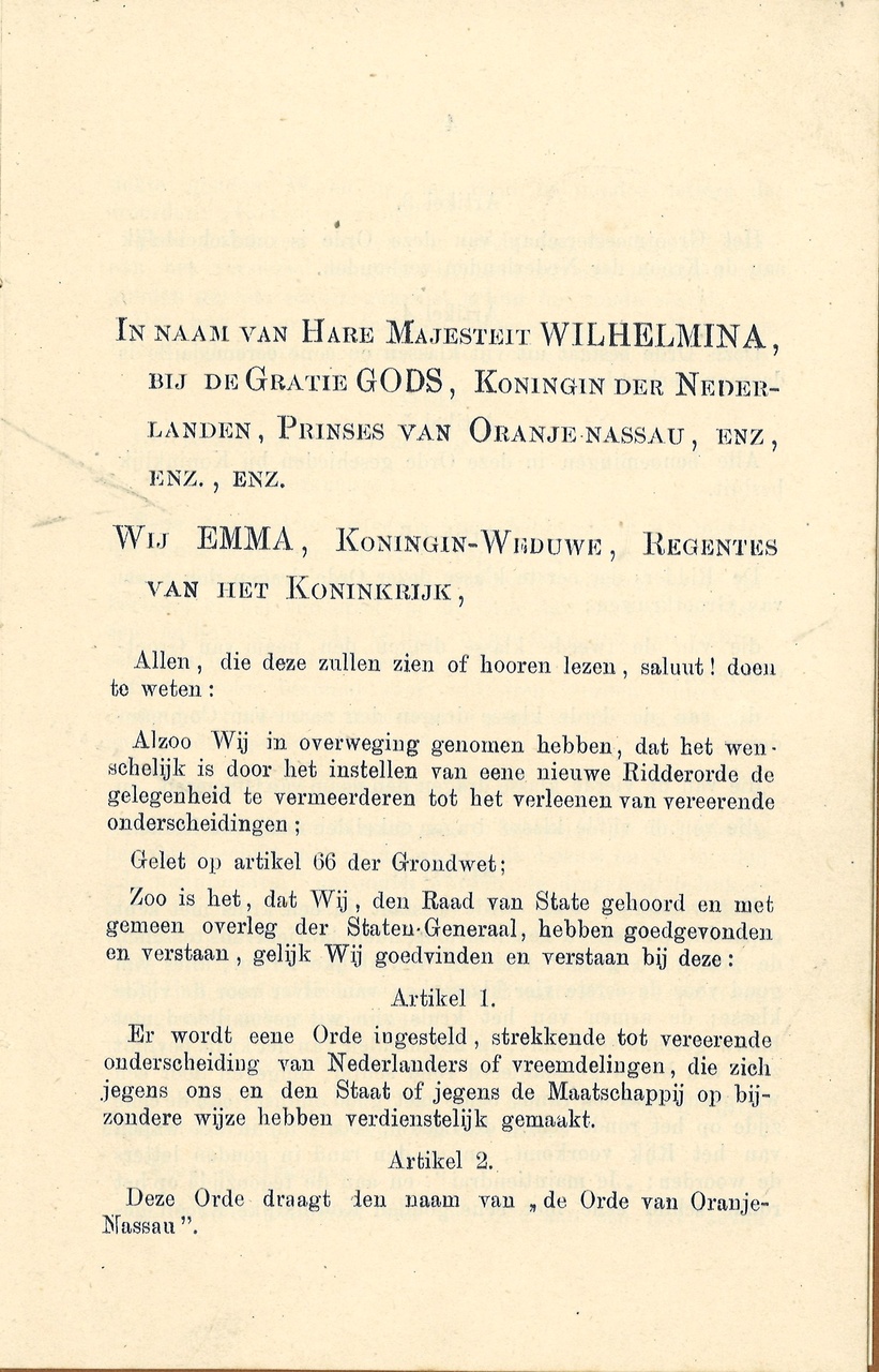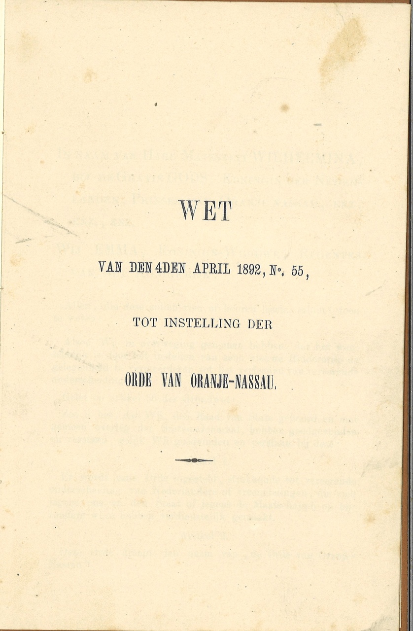 Wettekst in bruine, harde kaft met erop in goud het wapen van Nederland.