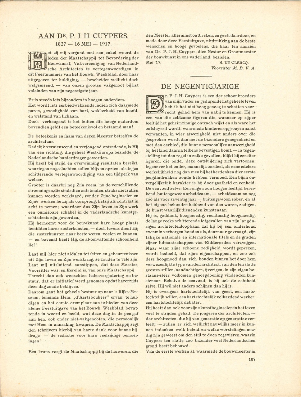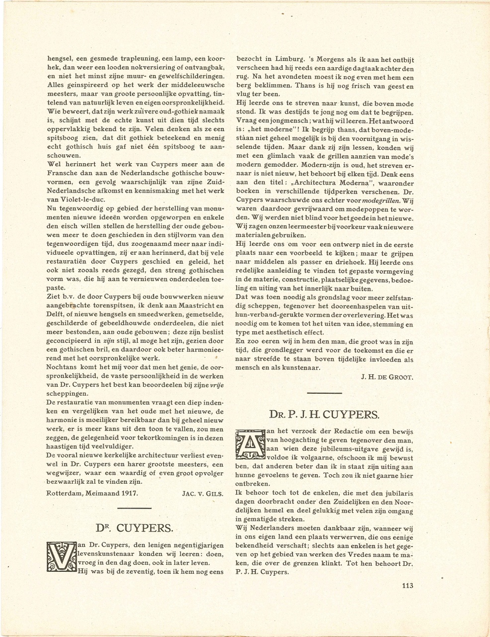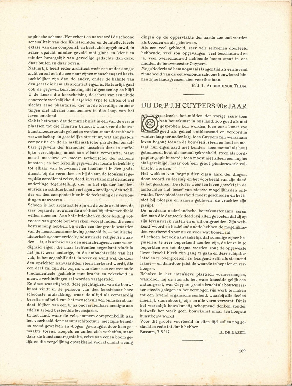 Dr. P.J.H. Cuypers-nummer. 19 mei 1917, 33e jaargang no 20. Met diverse artikelen.