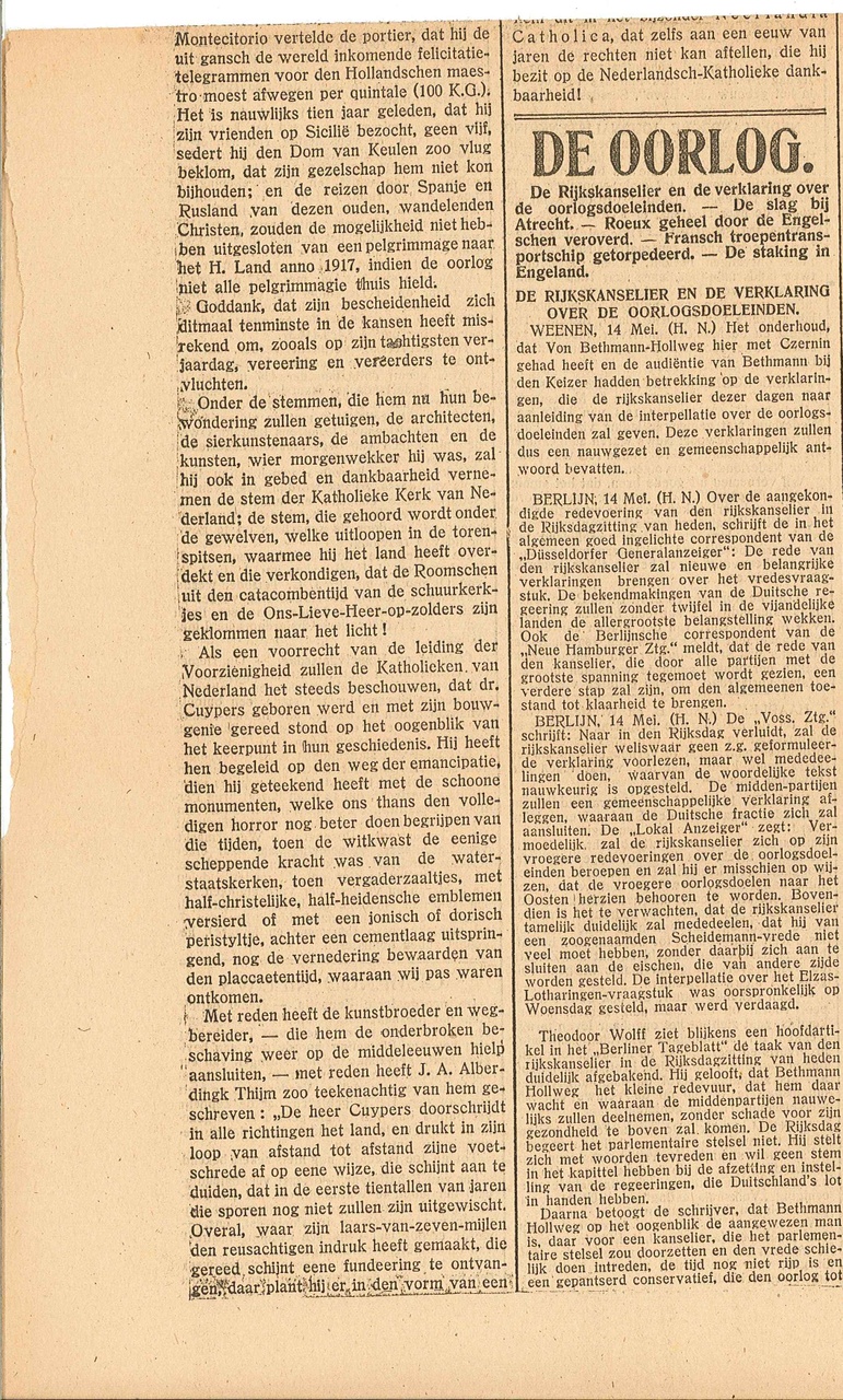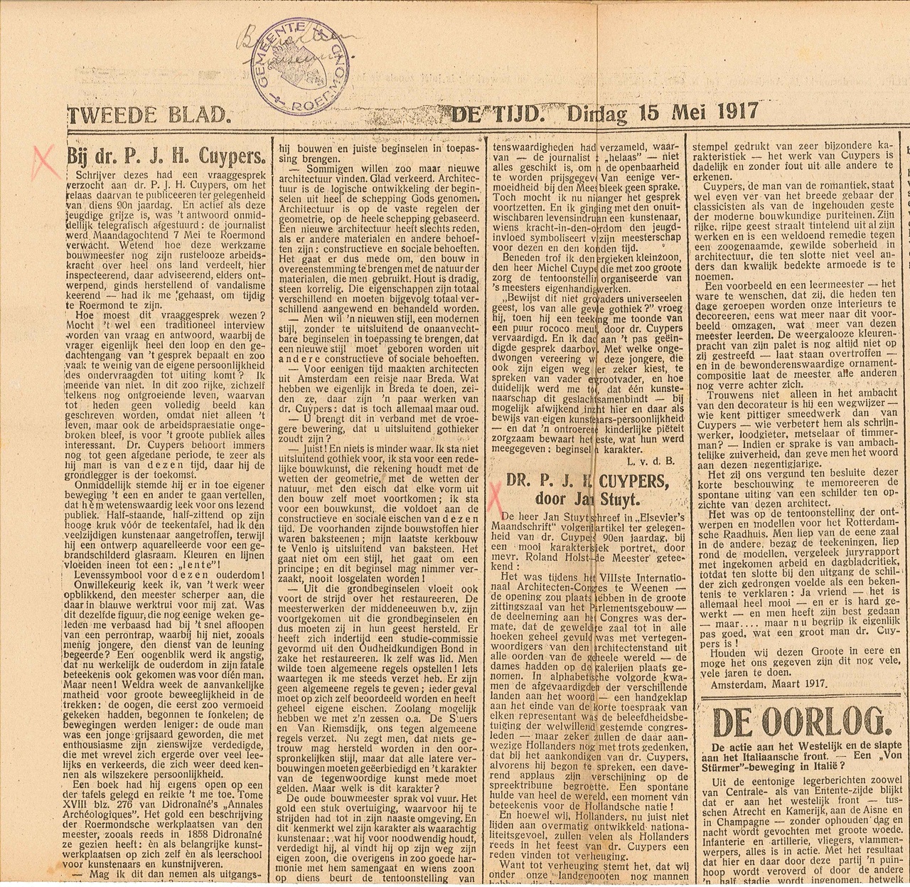 Met artikel: De Negentigste Verjaardag van Dr. P.J.H. Cuypers, op 1e en 2e blad. Dinsdag 15 mei 1917, 71e jaargang