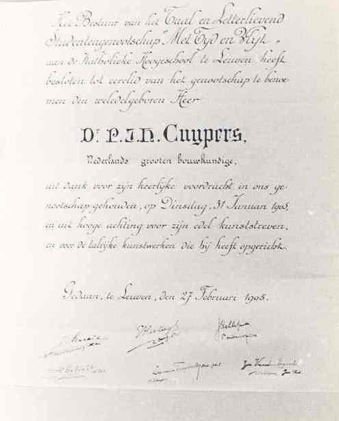 Taal en Letterlievend Studentengenootschap 'Met tijd en vlijt' van de Katholieke Hogeschool Leuven. Aan P.J.H. Cuypers