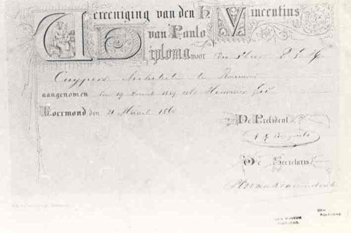 Ere-lidmaatschap Vereeniging H.Vicentius te Roermond aan P.J.H. Cuypers