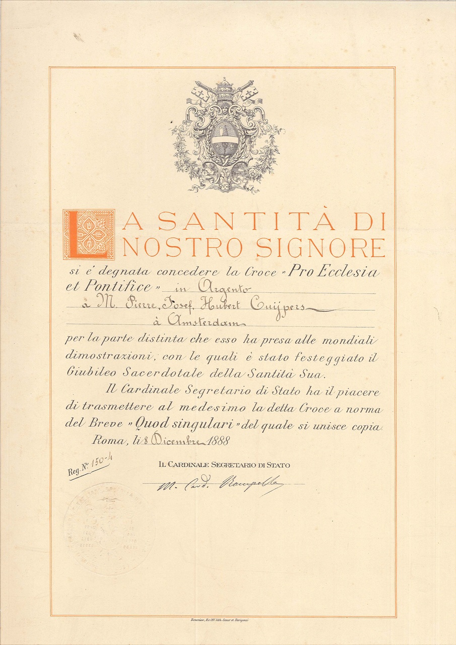 Document behorende bij de Pauselijke onderscheiding Pro Ecclesia et Ponticice