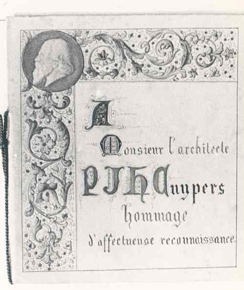 Tekst voorzijde: A Monsieur l'architect P.J.H. Cuypers hommage d'affecteuse reconnaissance.