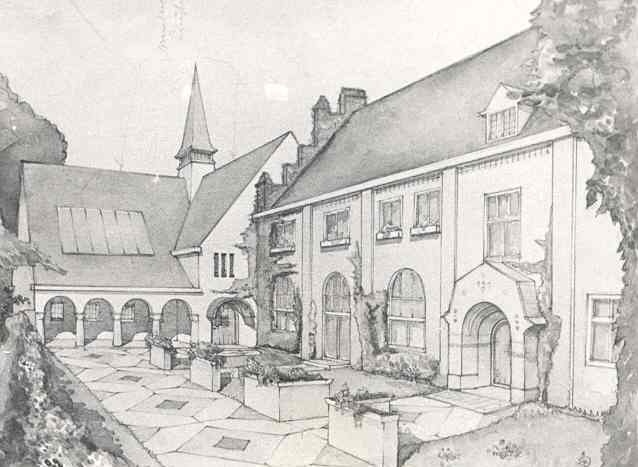Perspectieftekening ontwerp verbouw en uitbreiding Cuyperspand ten behoeve van de stichting van het Gemeentemuseum Hendrik Luyten - Dr. P.J.H. Cuypers