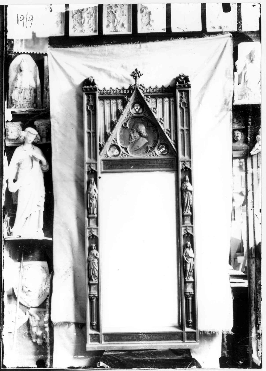 Op foto 061 staat de net voltooide houten omlijsting van de spiegel in de spiegelkast die gemaakt werd t.g.v. de 70-ste verjaardag van dr. P. Cuypers in 1897. Zie ook objectnr. 0363.