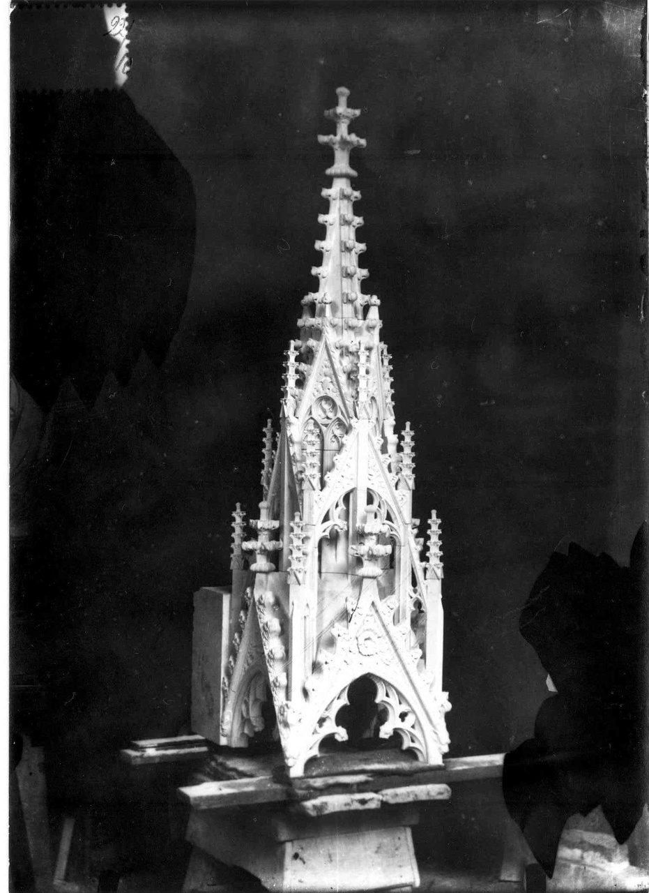 Op -10 staat de het bovenste stukje van een (toren- of altaar-)spits.