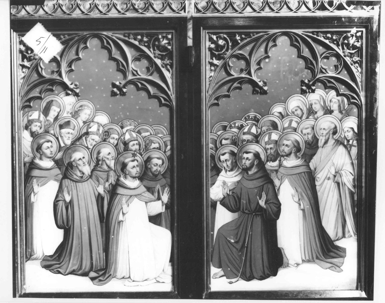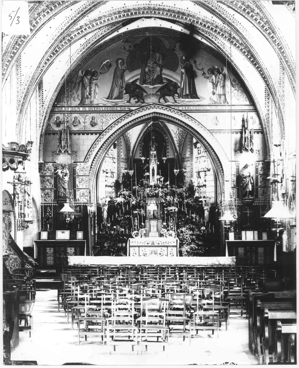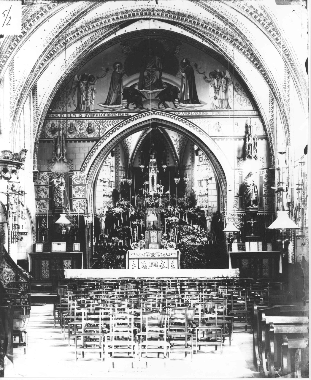 Op de identieke foto's 0690b-02 en -03 staat een kerkinterieur met de achterwand van foto -01.