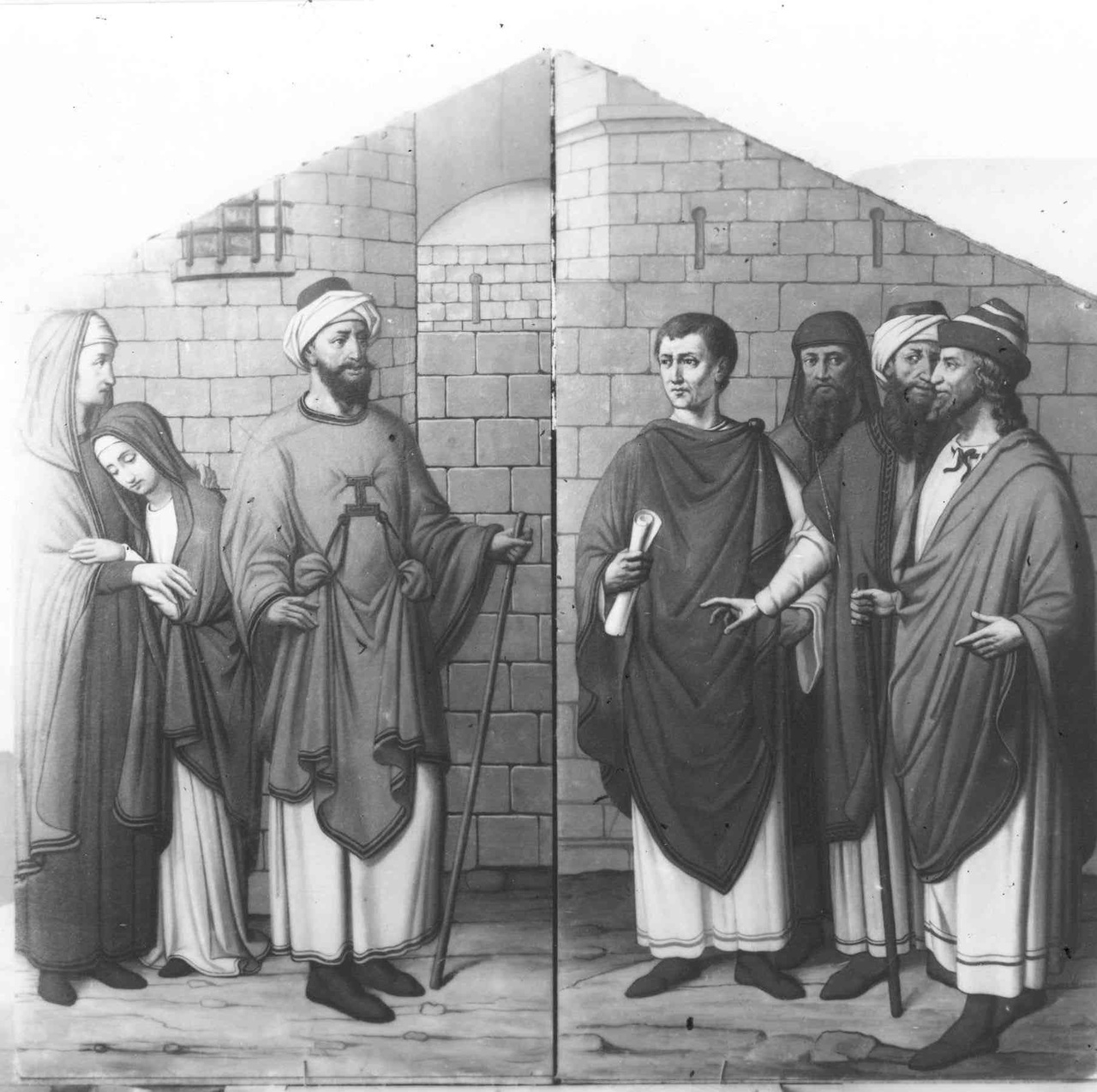 Foto -18 toont een schildering met bijbelse voorstellingen.