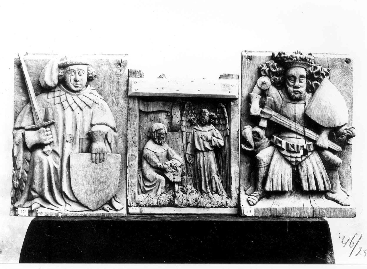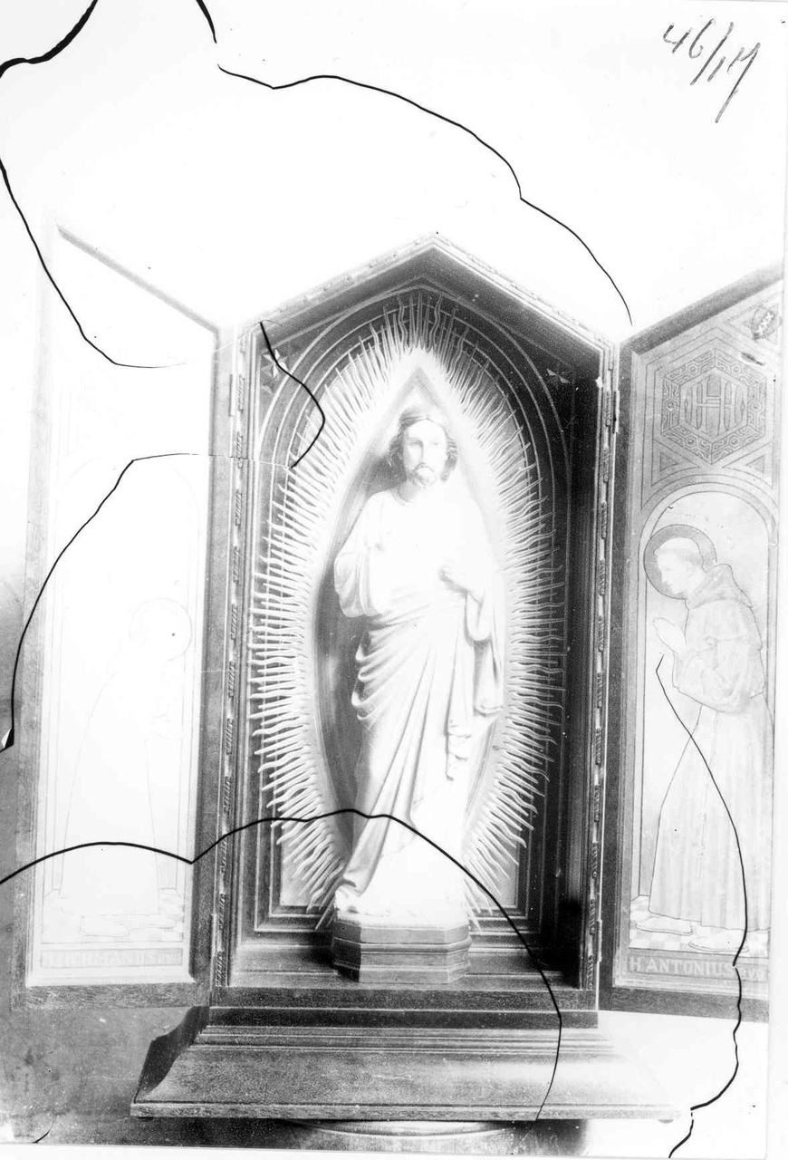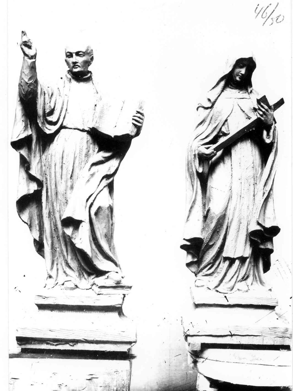 Op foto -40 staan twee heiligenbeelden (m. en v.)