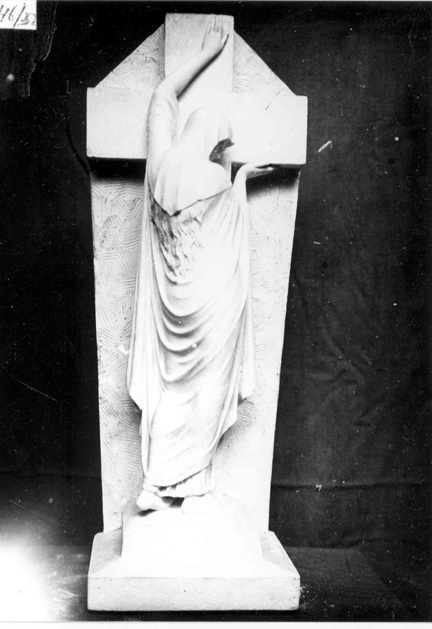 Op foto -26 is een beeld te zien waarop een dame bij een kruis staat.
