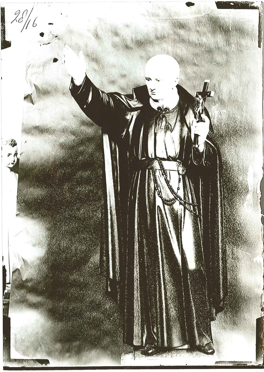 Op de foto's -17 t/m -21 en -26 staat een beeld van een priester, op -18 met een boek, op de andere foto's met een kruis.