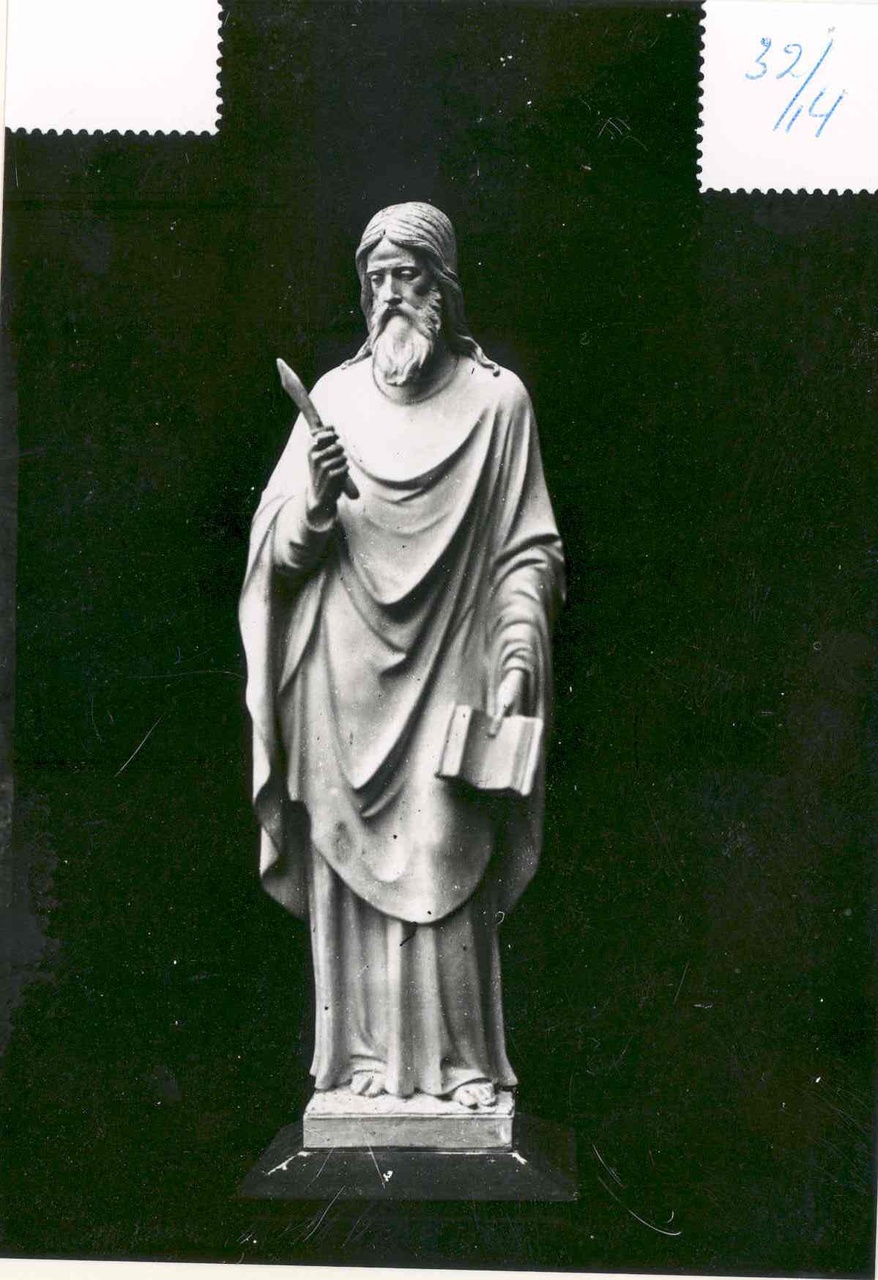 Op foto -14 is een beeld van een heilige met boek en pijlpunt afgebeeld.