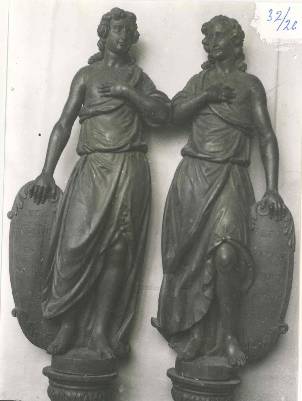 Op de foto's 0697a-01 en -02 staat een beeld van een monnik met staf en boek. Foto -01 is bekrast.