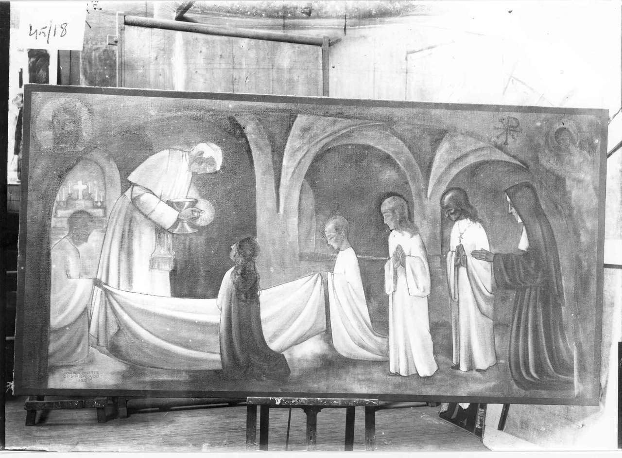 Op foto -12 staat een tekening van een communie-uitreiking.