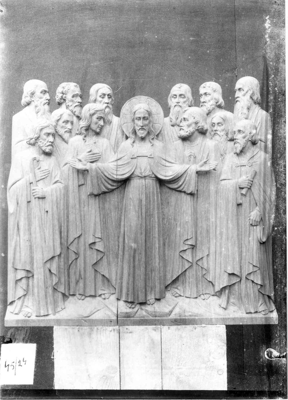 Op foto -16 staat een beeldengroep van Jesus en de 12 apostelen.