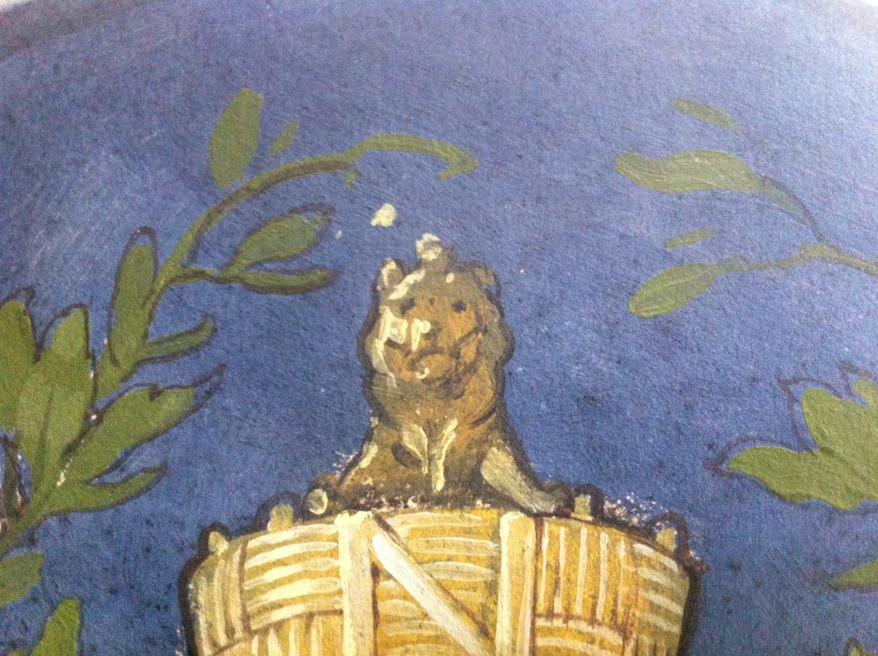 De gouache toont een voorstelling van de Nederlandse maagd, een zinnebeeld van het Nederlandse Gemenebest. De vrouw draagt een wapenschild met de Nederlandse leeuw en ze staat voor een boom met oranje sinasappels, een verwijzing naar het Nederlandse koningshuis. Het ontwerp is uitgevoerd boven de voordeur naar de Koninklijke wachtkamer in het Centraal Station in Amsterdam. Het is vervaardigd door de Weense kunstschilder George Sturm, die op verzoek van Pierre Cuypers een groot deel van de decoratie van het Rijksmuseum en het Centraal Station in Amsterdam heeft ontworpen.
