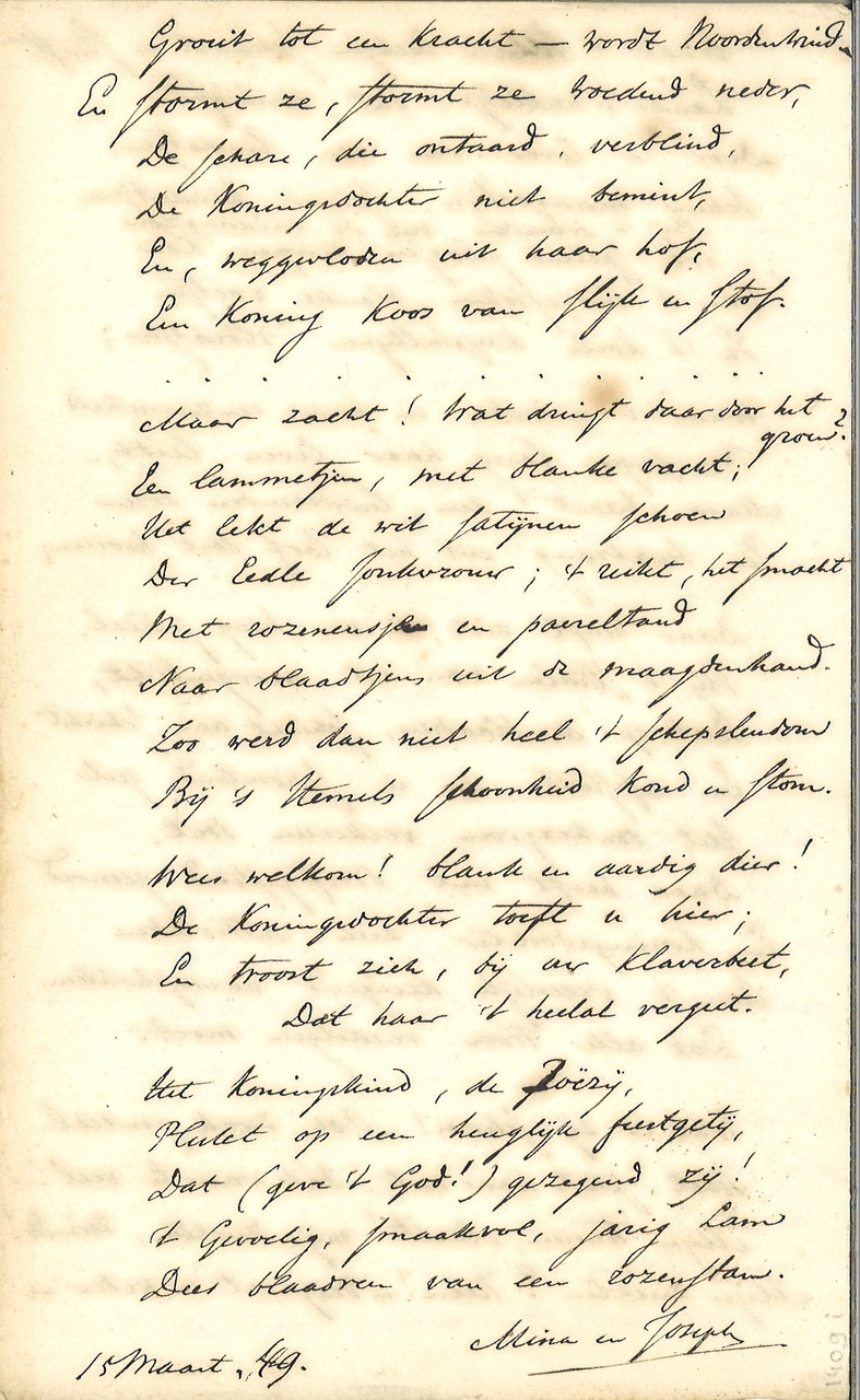 Aan onzen lieve zuster Antoinette op haar twintigsten verjaardag. 15 maart '49. Door: Mina en Joseph. Dubbelgevouwen, aan 4 zijden beschreven.