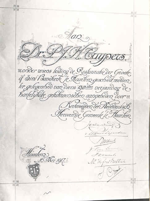 Oorkonde bij gelegenheid van de 90e verjaardag van Dr. P.J.H. Cuypers