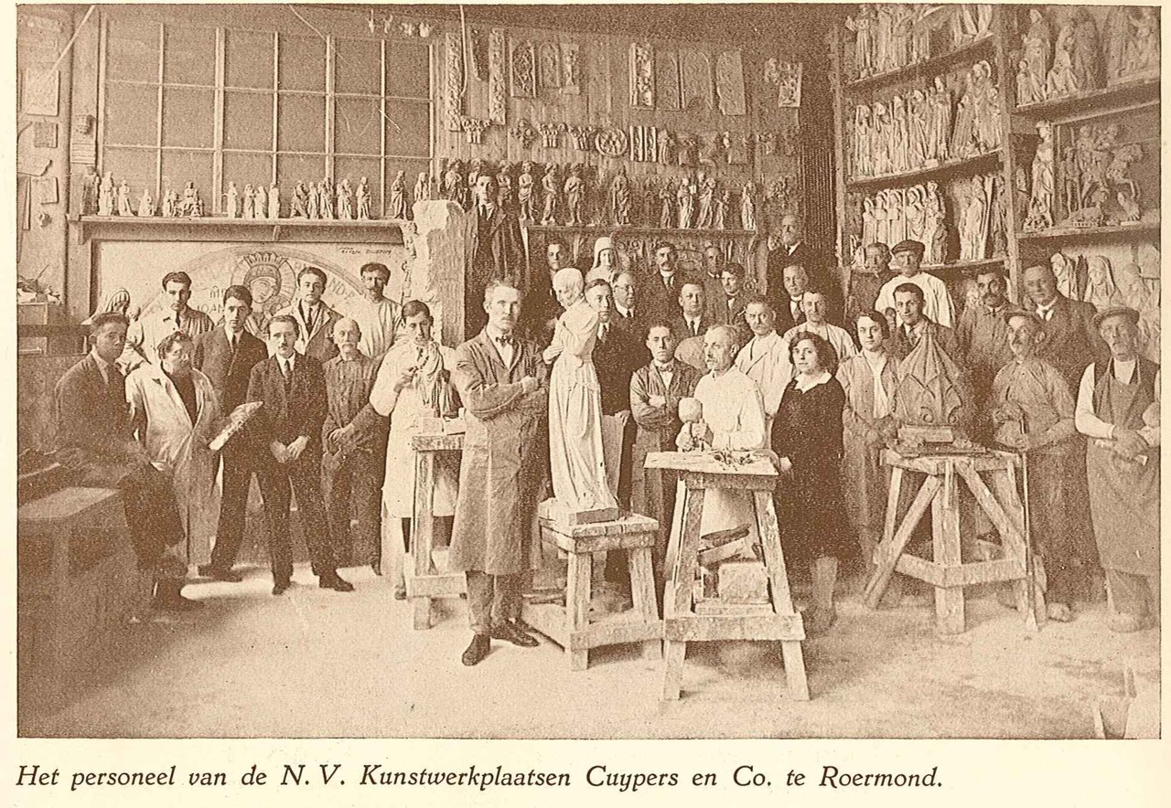 40 pagina's met div. foto's (zwart/wit) van door de werkplaatsen uitgevoerde altaren, preekstoelen etc. Foto gebouwen And. 2 en 4, Jos Cuypers, personeel en Cuypers met kleinzoon bij borstbeeld.