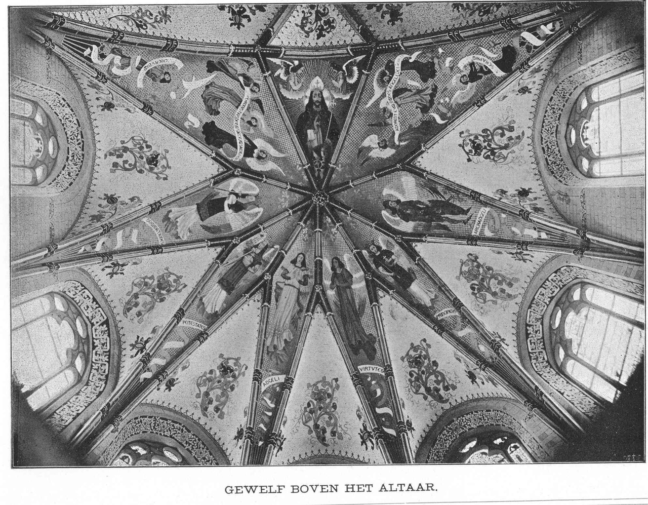 Een boekje met de omvang van 18 pagina's in omslag, excl. 5 fotopagina's (van de muur/gewelfschilderingen) op 1/1 formaat. Auteur H. Dijkmans S.J. Gedrukt door Maatschappij De Gelderlander te Nijmegen
