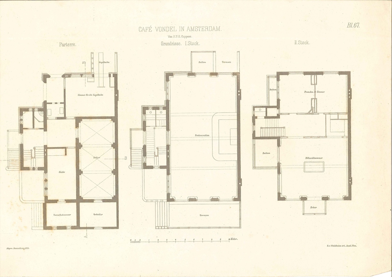 Op de ontwerptekeningen is het Café Vondel te Amsterdam afgebeeld.