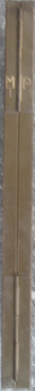 voorzijde boven en rug: geverfd: Mi P / witte letters
