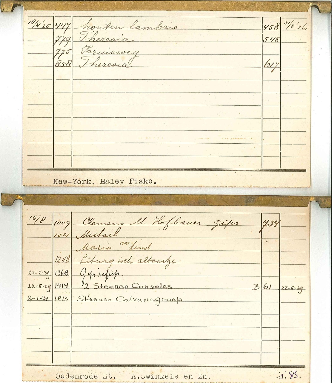 Afbeelding 5356-4 dient als voorbeeld van een archiefkaartje voor een bestelling uit New York en een uit Sint Oedenrode.
