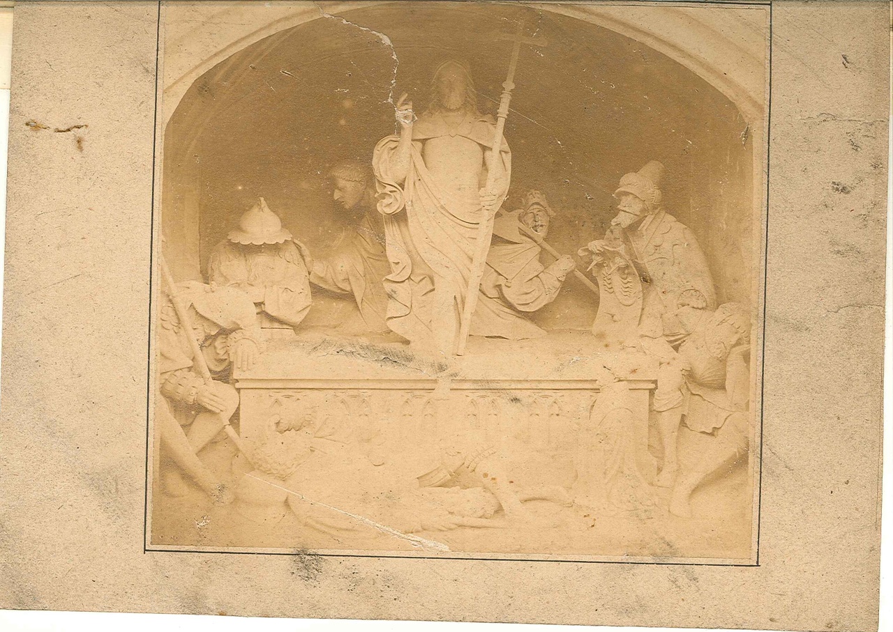 Op foto 5374-2 is een Christusfiguur te zien bij een (lijk?-)kist. Rondom staan en zitten diverse figuren met merkwaardige hoofddeksels. Een van hen heeft een hellebaard in de hand.
