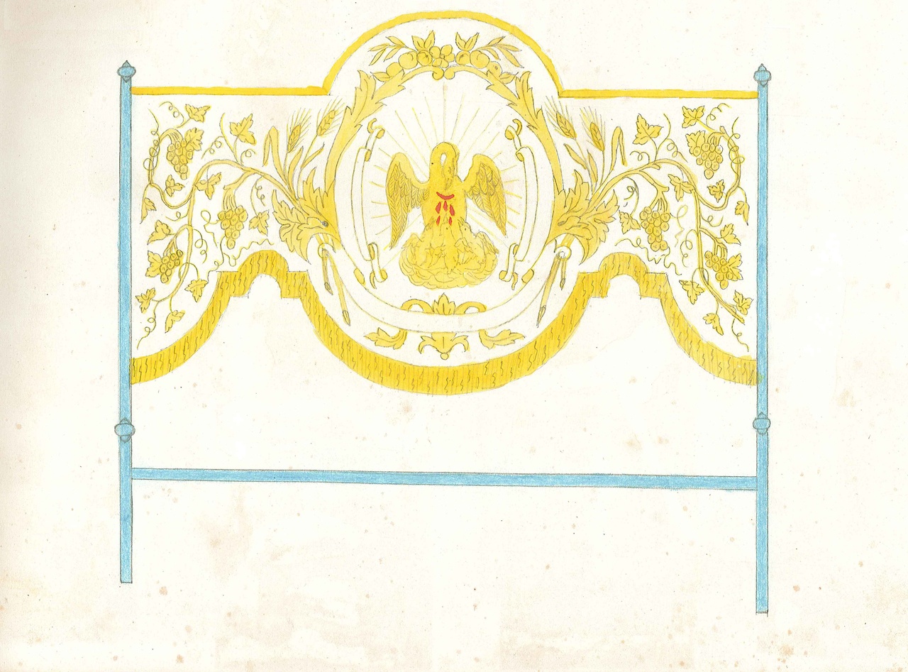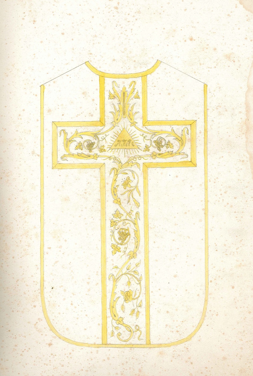 Schetsboek van August Raemaekers met ontwerpen voor religieus textiel, zoals kazuifels voor de eucharistieviering. Raemaekers was leerling-borduurder bij het atelier van Frans Stoltzenberg.