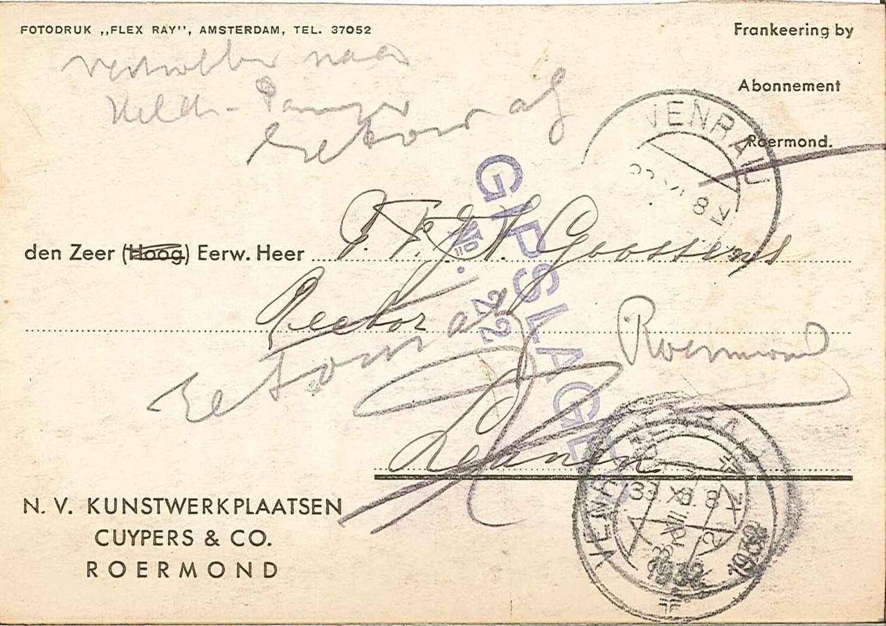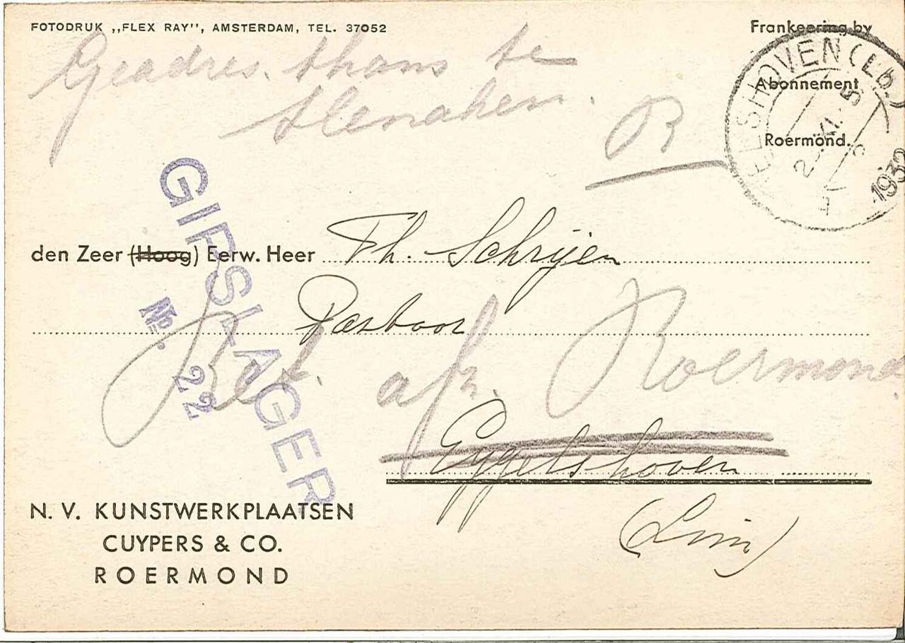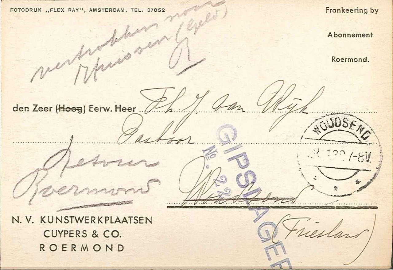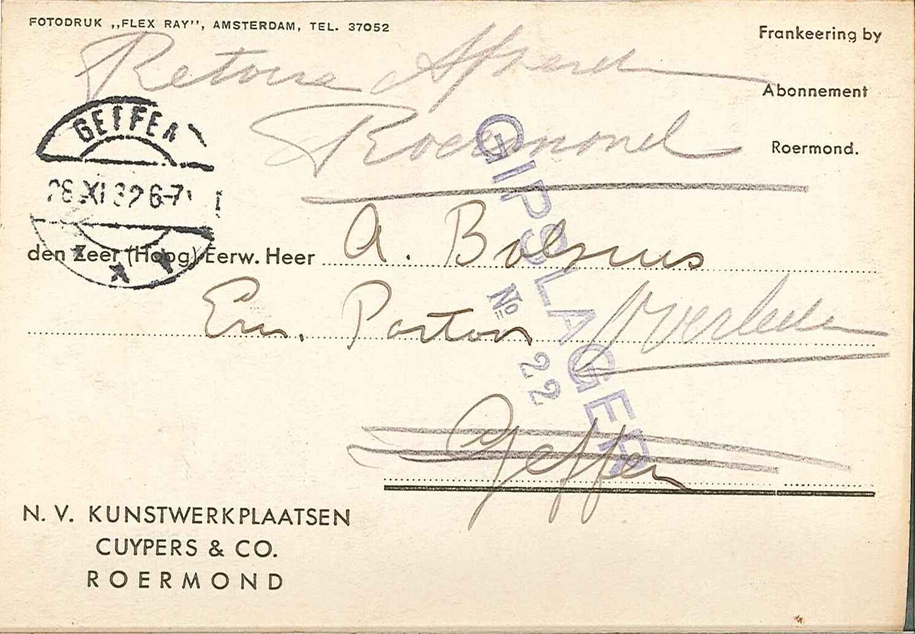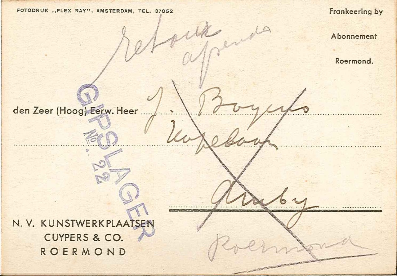 achterzijde: gedrukt: N.V. KUNSTWERKPLAATSEN CUYPERS & Co.