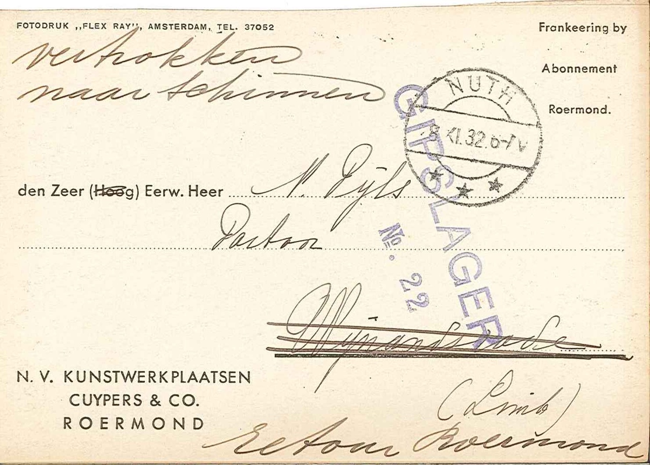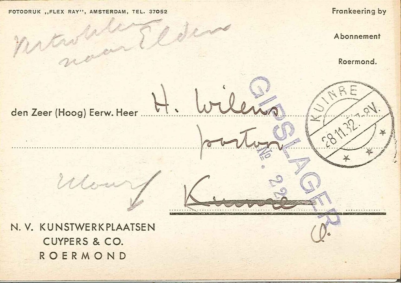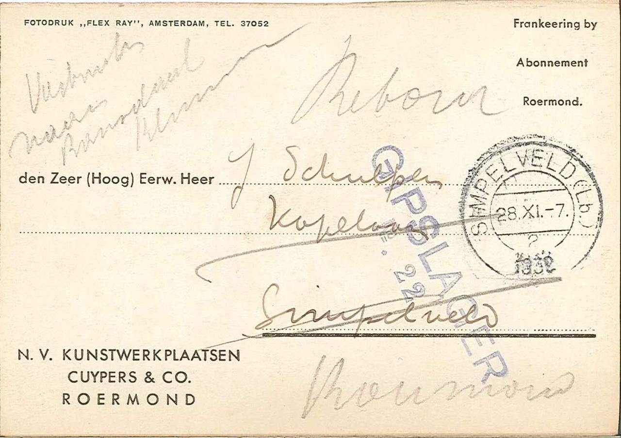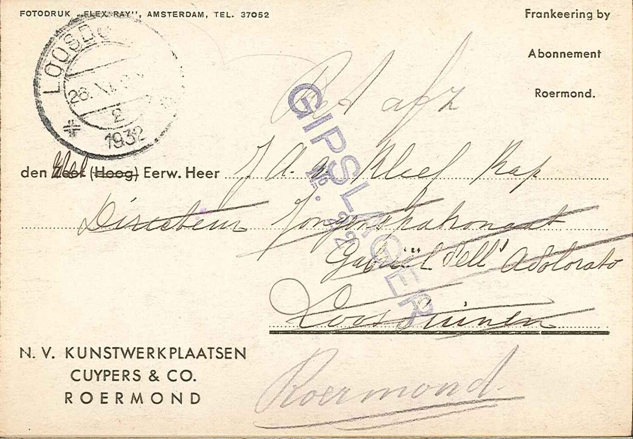 achterzijde: gedrukt: N.V. KUNSTWERKPLAATSEN CUYPERS & Co.