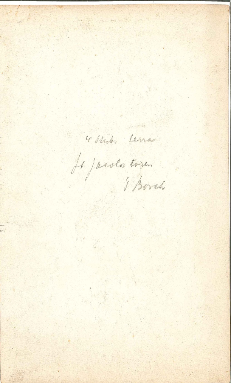 achterzijde 5458-1: geschreven: 4 stuks terra St. Jacobstoren 's Bosch / potlood
