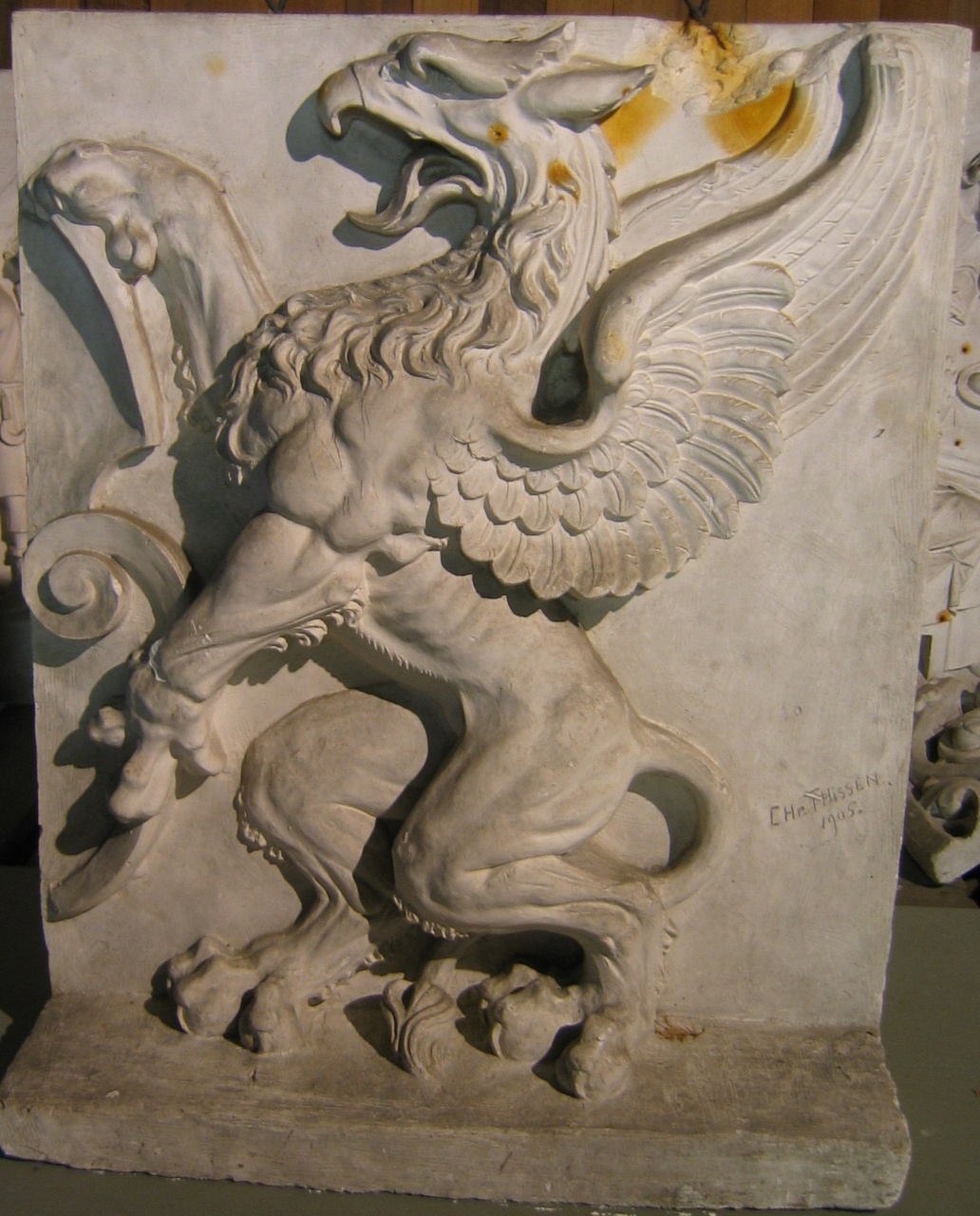Gipsreliëf waarop een griffioen (gevleugelde leeuw)