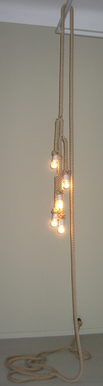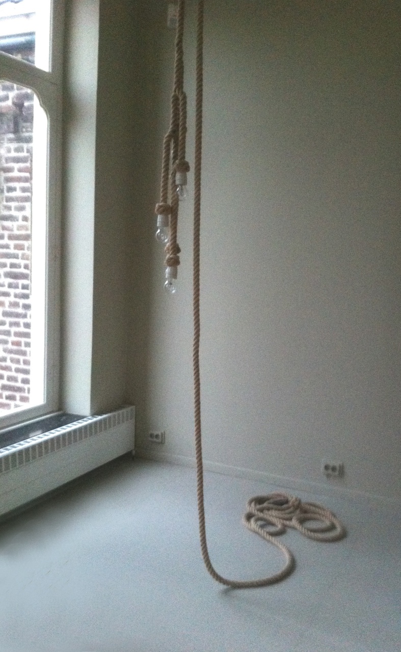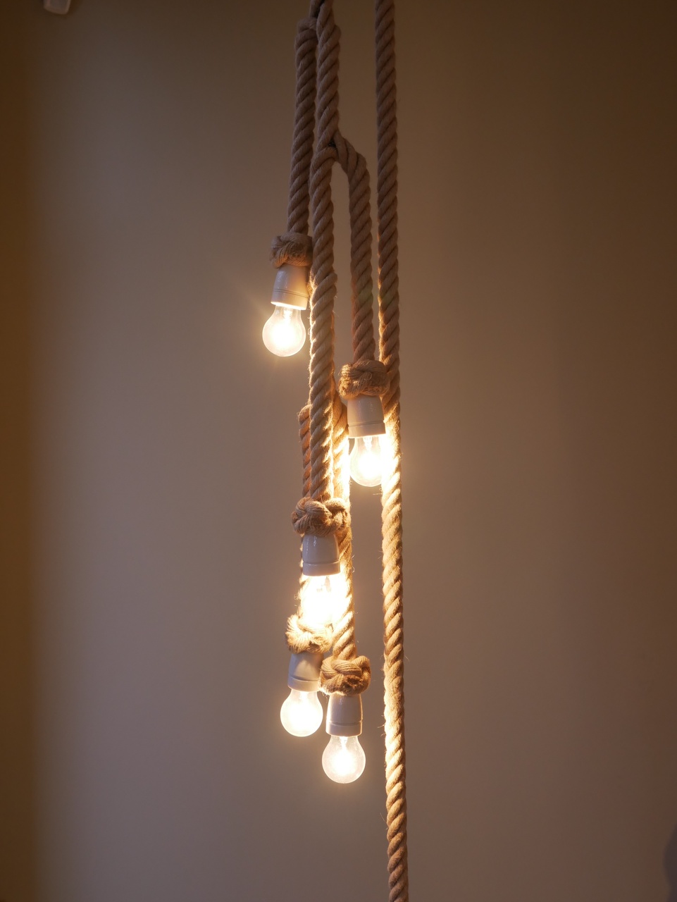De verlichtingsset bestaat uit 5 lampen. Het zwarte snoer van de lamp is omwikkeld met vlas.