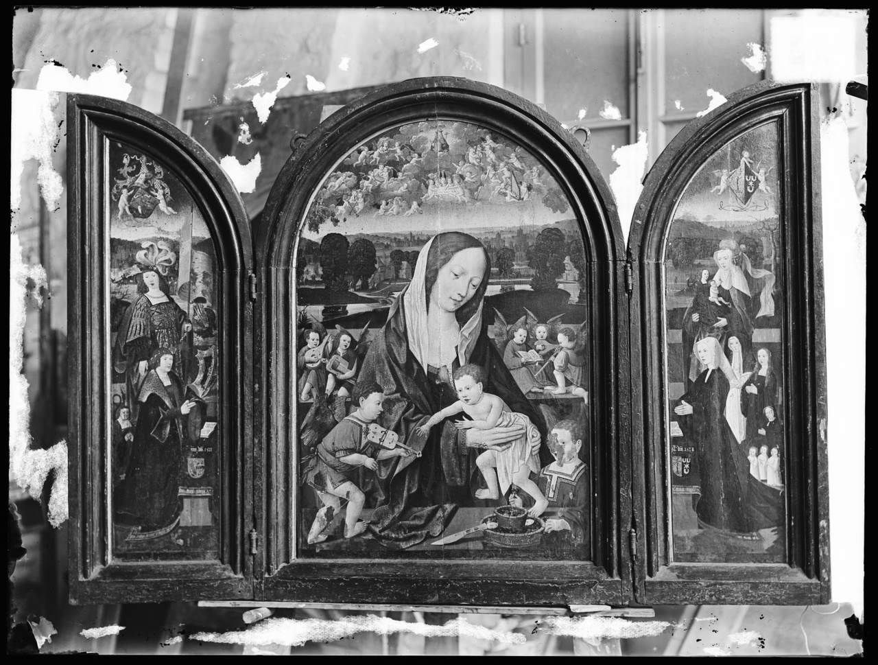 Drieluik 'Maria met kind en musicerende engelen' met familiewapens