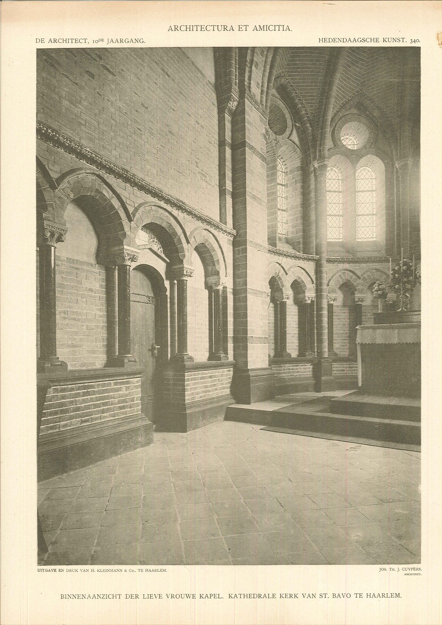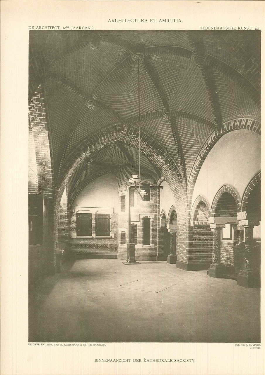 De platen zijn afkomstig uit de 10de jaargang van het blad "De Architect". De ontwerptekening is de doorsnede AB van de kathedraal. Er zijn verder een foto van een kapiteel en een deur, een foto van de OL Vrouwe Kapel, en een foto van de sacristie.