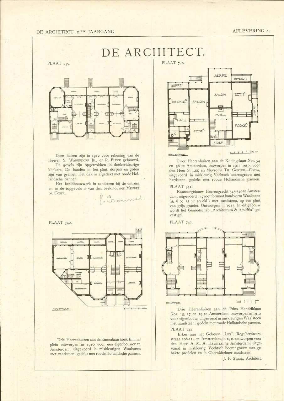 De tekst en foto's zijn afkomstig uit de 21ste jaargang van het blad "De Architect", "Hedendaagsche Kunst 743 en 744".