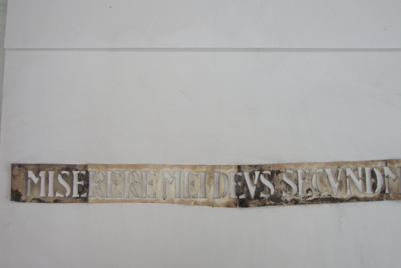 Sjabloon met tekstband: "MISERERE MEI DEUS SECUND'M".