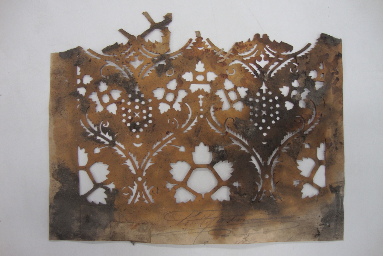 Het sjabloon is gesigneerd, de signatuur is echter moeilijk leesbaar: ....dermans of ....ckermans.