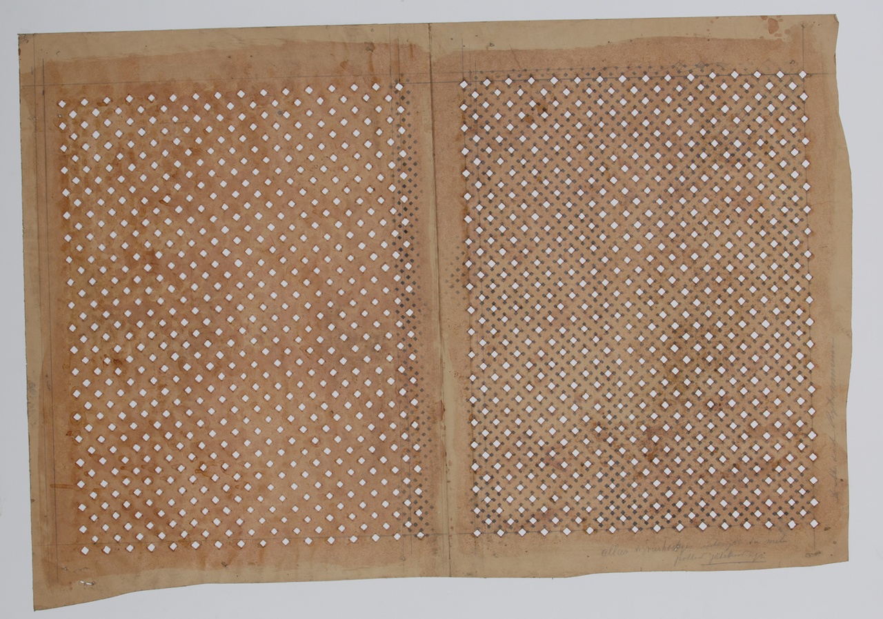 rechts onder: geschreven: alleen de vierkantjes uitsnijden die met potlood geschreven zijn. / potlood