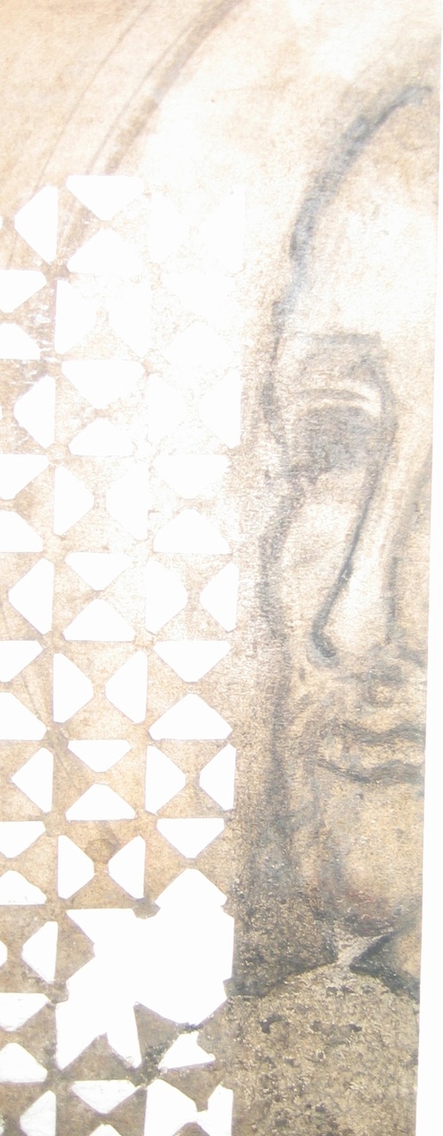 Het papier is eerder voor andere doeleinden gebruikt: er heeft een schets op gestaan, op de rechter zijkant is een stuk van een gezicht te zien (zie foto 5782-1).
