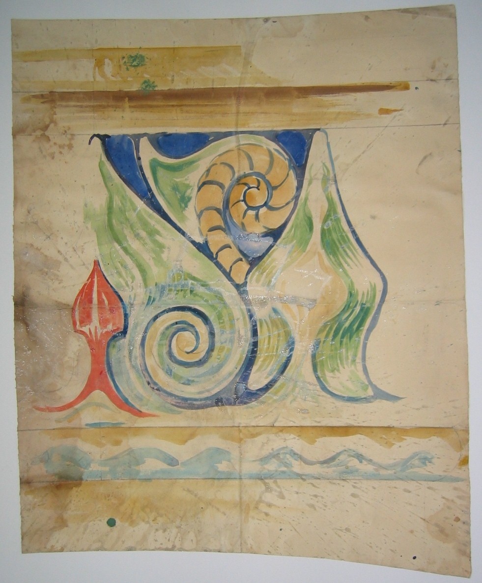 Hulplijnen in potlood zijn zichtbaar. Het lijkt wel of er een hoeveelheid waterverf op is gemorst.